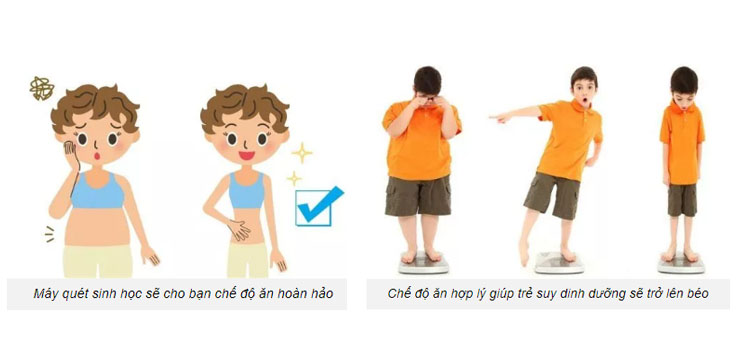 Kiểm tra được lượng mỡ thừa hay thiếu và sẽ cho bạn 1 chế độ ăn phù hợp.